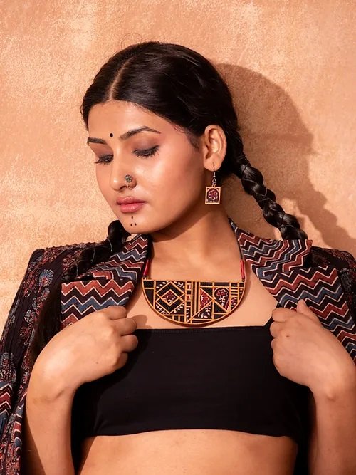 The fashion industry generates a huge amount of cutting waste. About 15% of fabric gets wasted during the cutting of the garment. In this collection, we've upcycled this waste into beautiful fabric, creating lovely jewelry pieces and contributing to a sustainable society.
