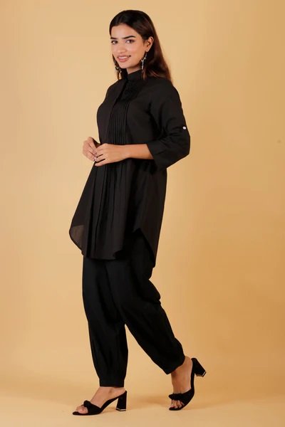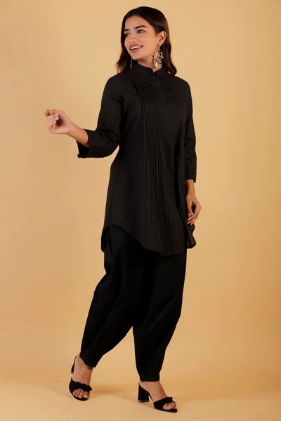 Our beautiful, elegant & soft fine quality cotton pintuck tunic-balloon pant co-ord set that can be worn as office, casual & formal wear. FABRIC - 100% Cotton CARE - Hand Wash Separately In Cold Water. Dry Reverse In Shade.