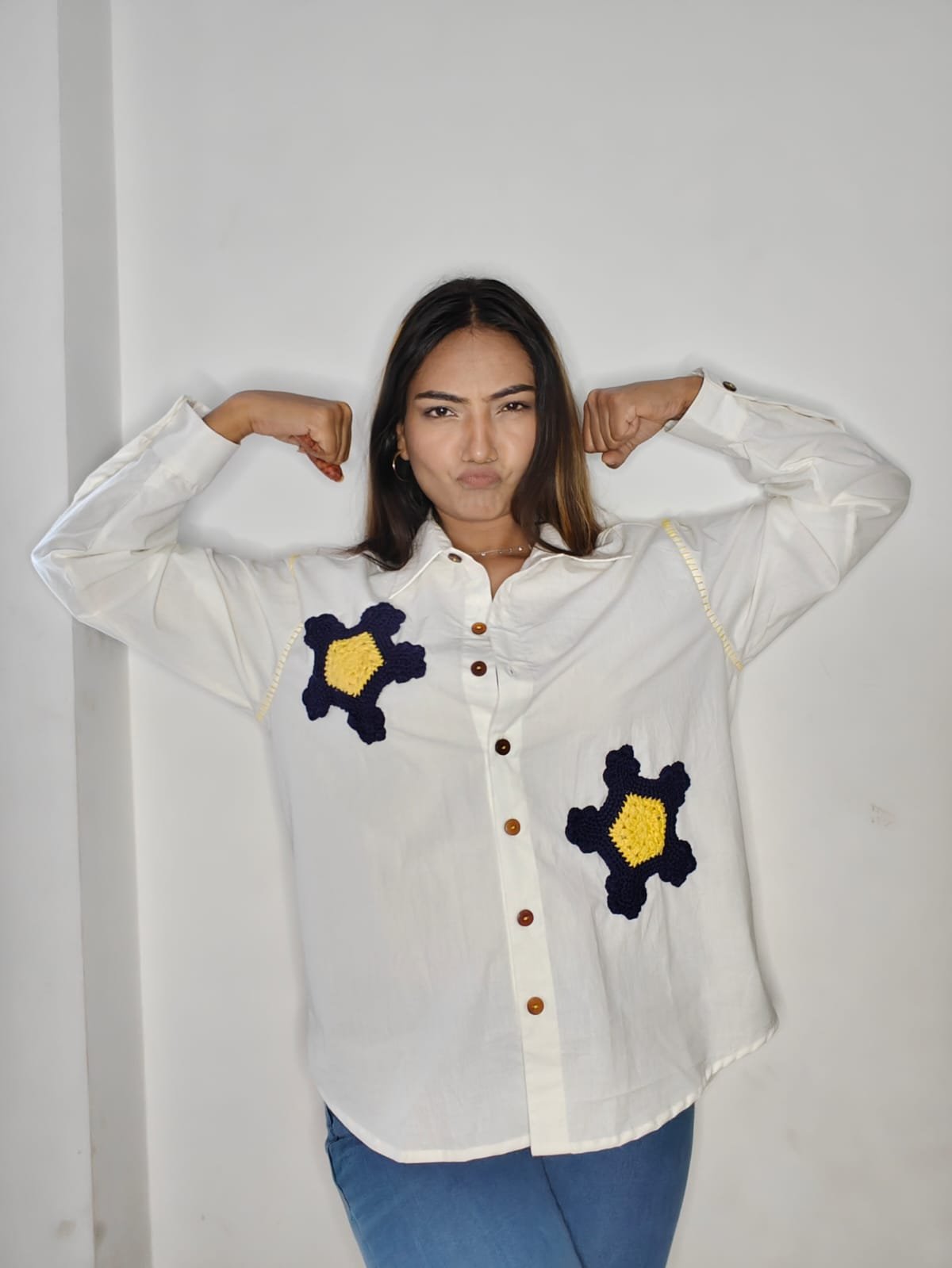 CROCHET FLOWER DESIGN 100% COTTON SHIRT
