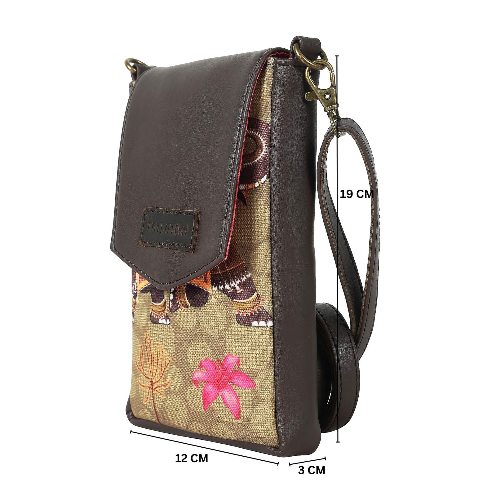 Size: 7.5 x 4.7 x 1 Inches Material: Poly Canvas & Vegan Leather PRODUCT FEATURES Detachable & Adjustable Sling Strap 1 Main Compartment with Flap & Magnetic Closure 1 External Pocket with YKK Zipper
