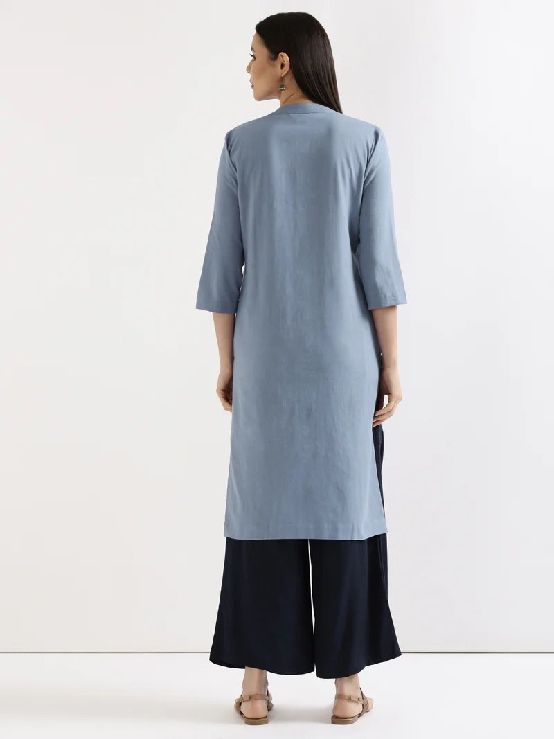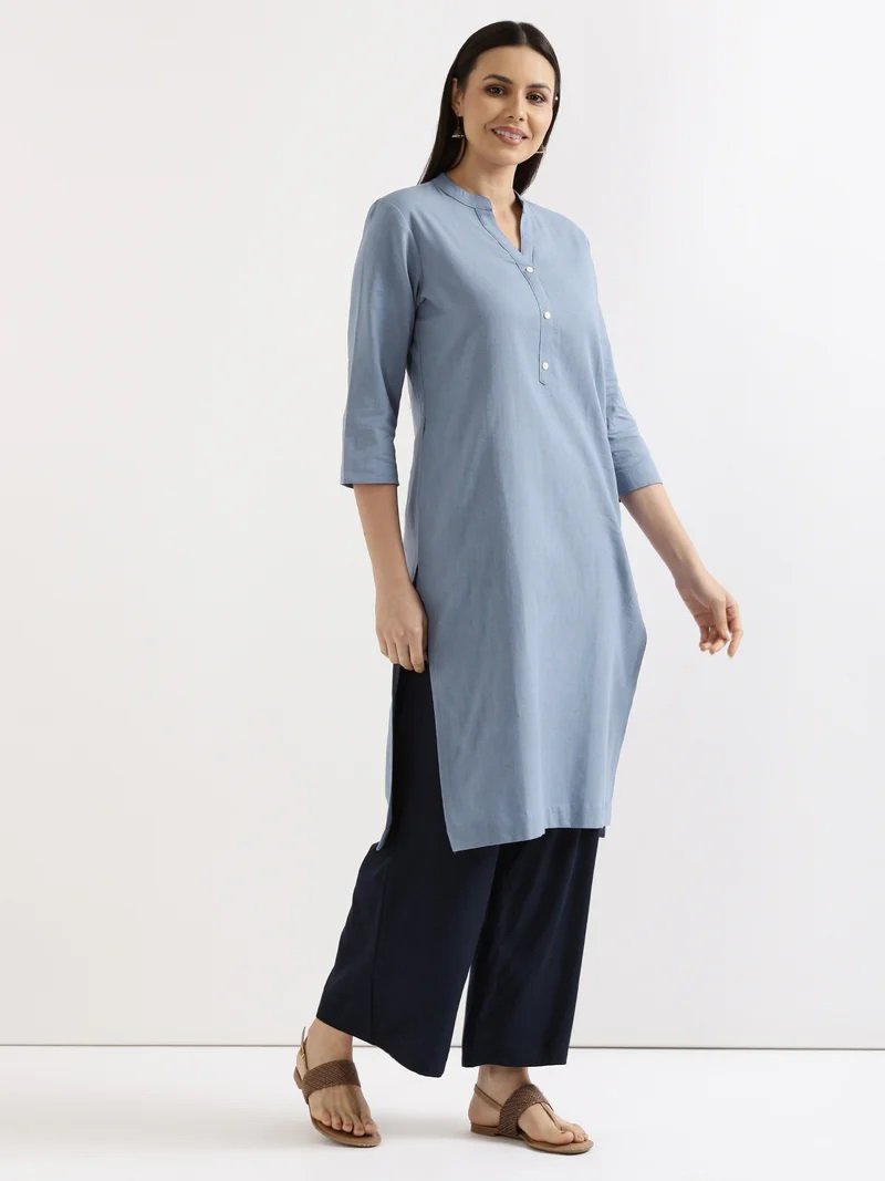 English Blue Airy Linen Long Kurta