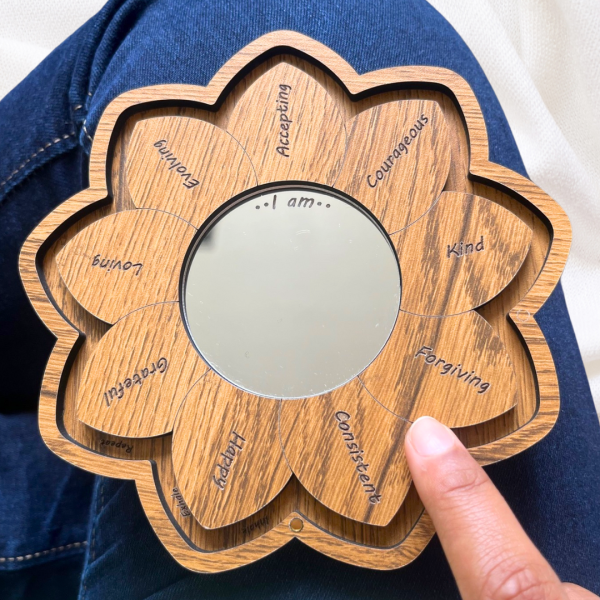 Energize Yourself with Rhythmic Breathing and Affirmation Description: Unlock the power within you and embark on a journey of self-discovery with Everyday Energizer – the revolutionary product designed to rejuvenate your life force energy through the harmonious blend of rhythmic breathing and positive affirmations. Let's delve into the details of this innovative tool and explore how it can transform your daily routine. Concept: Everyday Energizer is a beautifully crafted wooden flower-shaped tool, featuring nine intricately designed petals and a central mirror. This unique combination serves as a guide for your rhythmic breathing and affirmation practice.