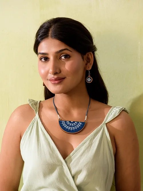 The fashion industry generates a huge amount of cutting waste. About 15% of fabric gets wasted during the cutting of the garment. In this collection, we've upcycled this waste into beautiful fabric, creating lovely jewelry pieces and contributing to a sustainable society.