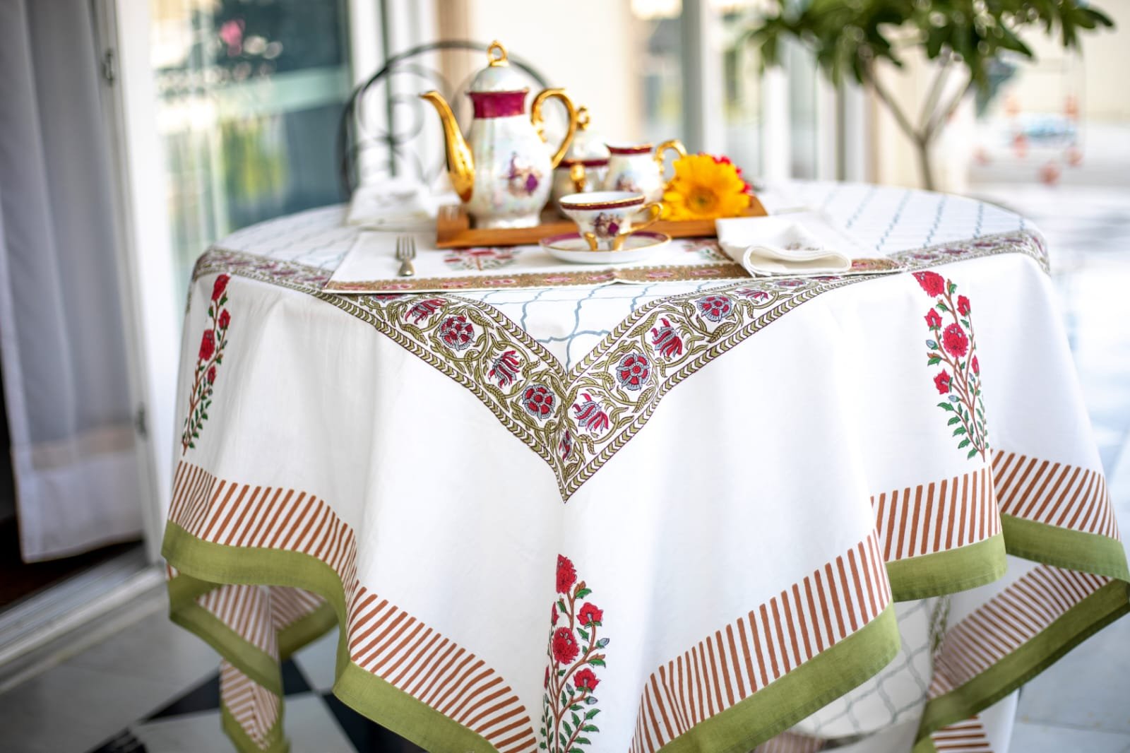HANDBLOCK PRINTED TABLE COVER 8 SEATER RED GREEN