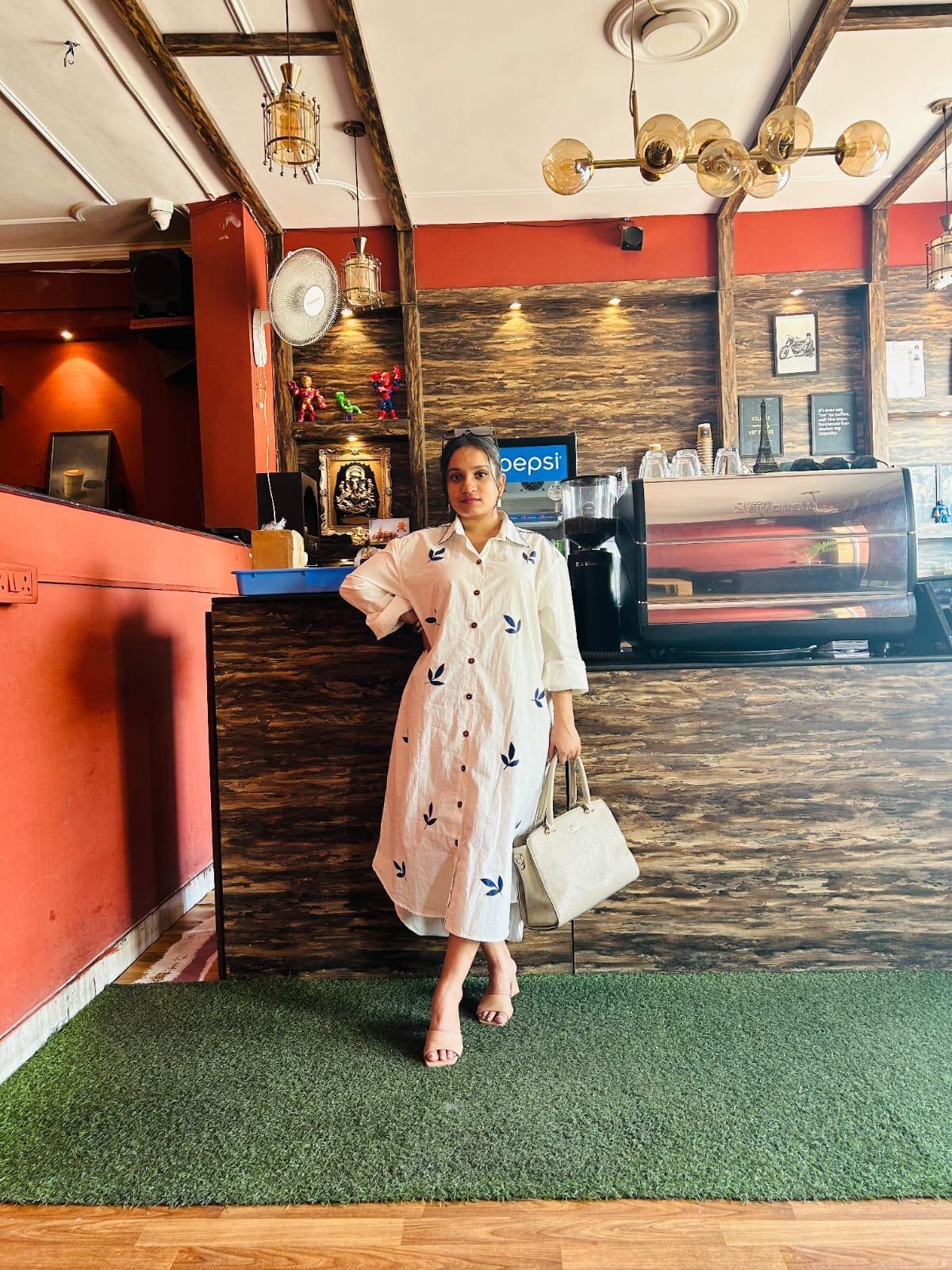 Leaf hand painted 100% Cotton Shirt Dress