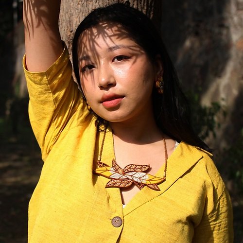 The fashion industry generates a huge amount of cutting waste. About 15% of fabric gets wasted during the cutting of the garment. In this collection, we've upcycled this waste into beautiful fabric, creating lovely jewelry pieces and contributing to a sustainable society.