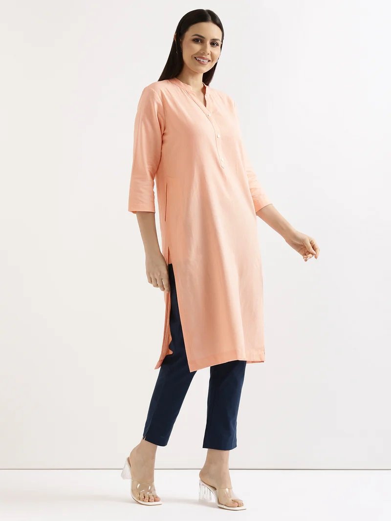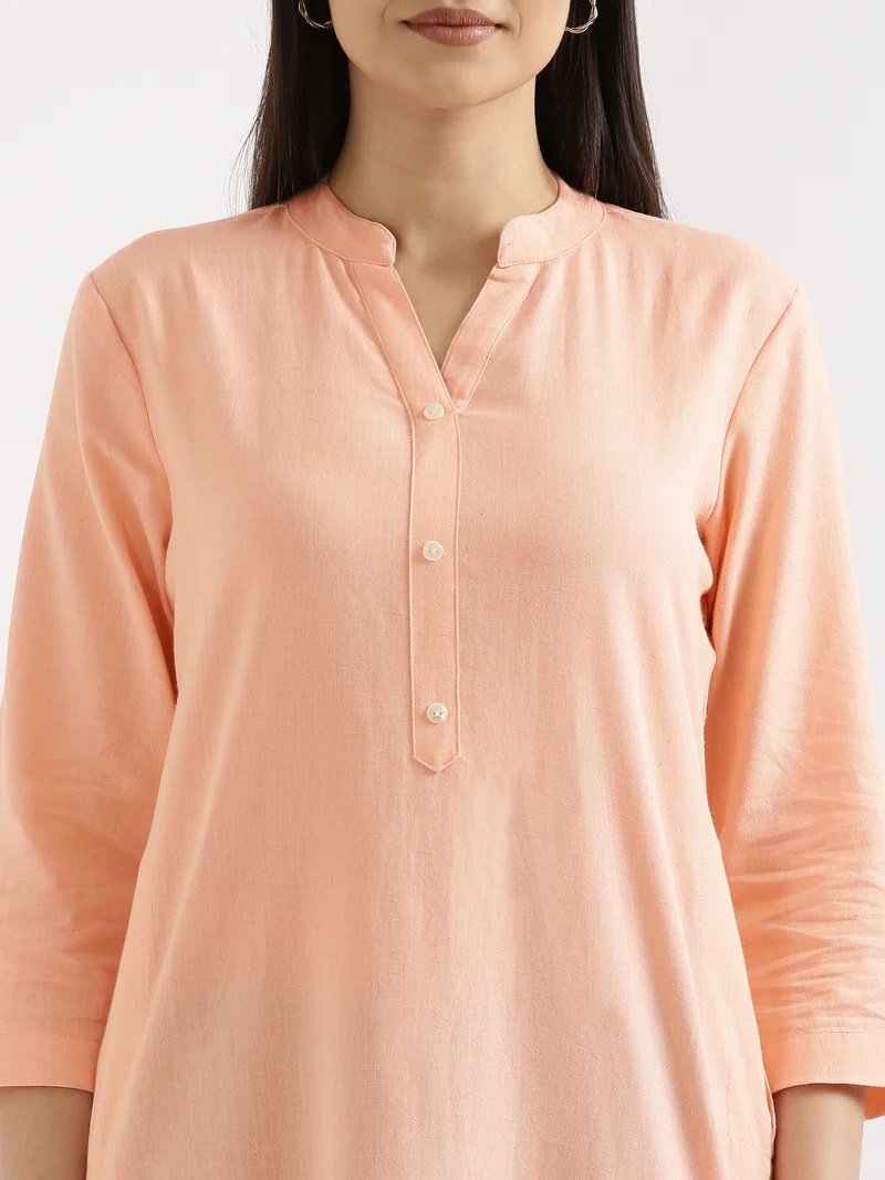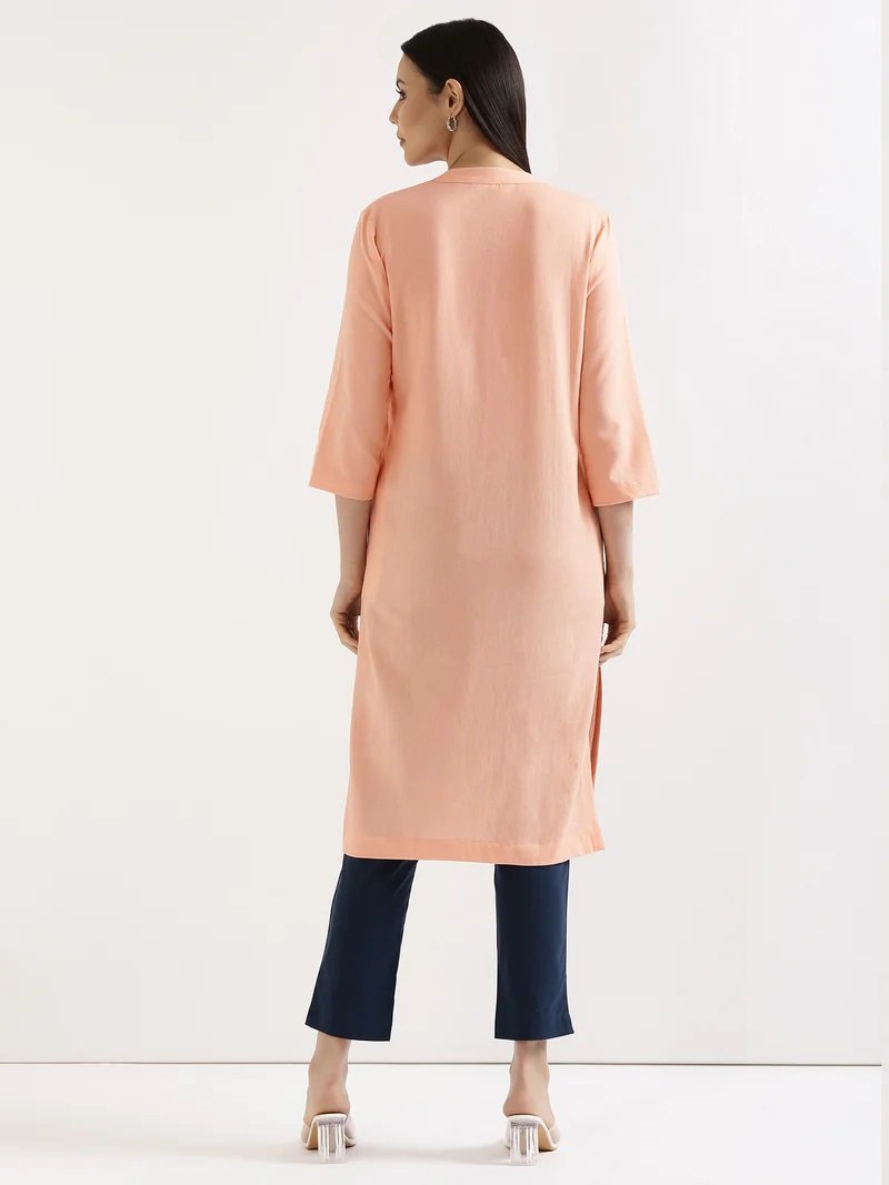 Peach Airy Linen Long Kurta