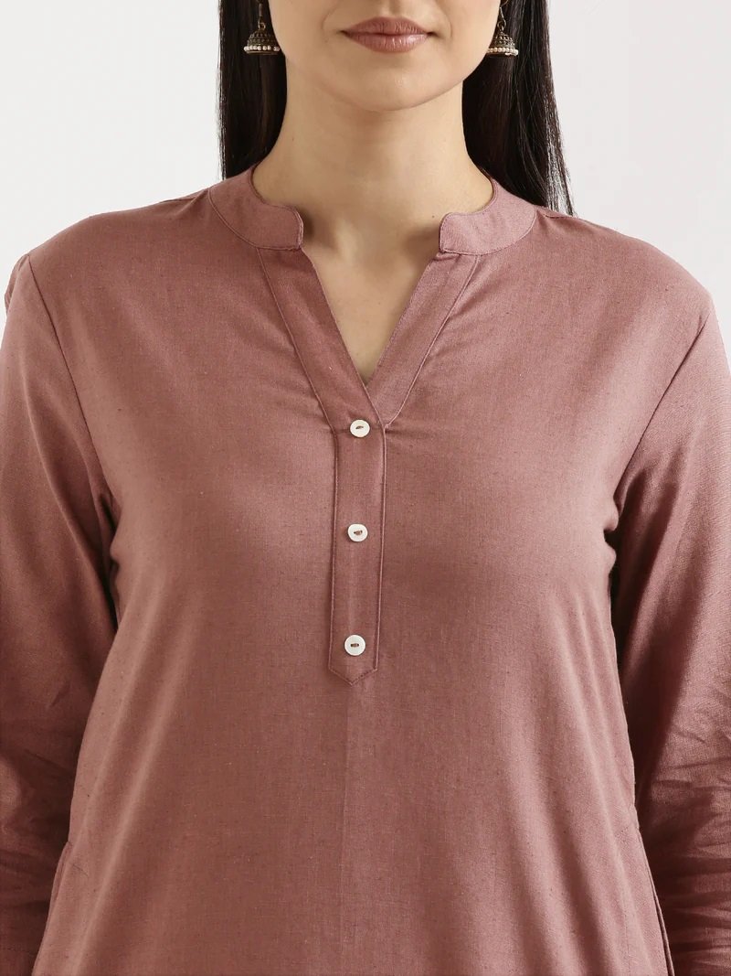 Rose Taupe Airy Linen Long Kurta