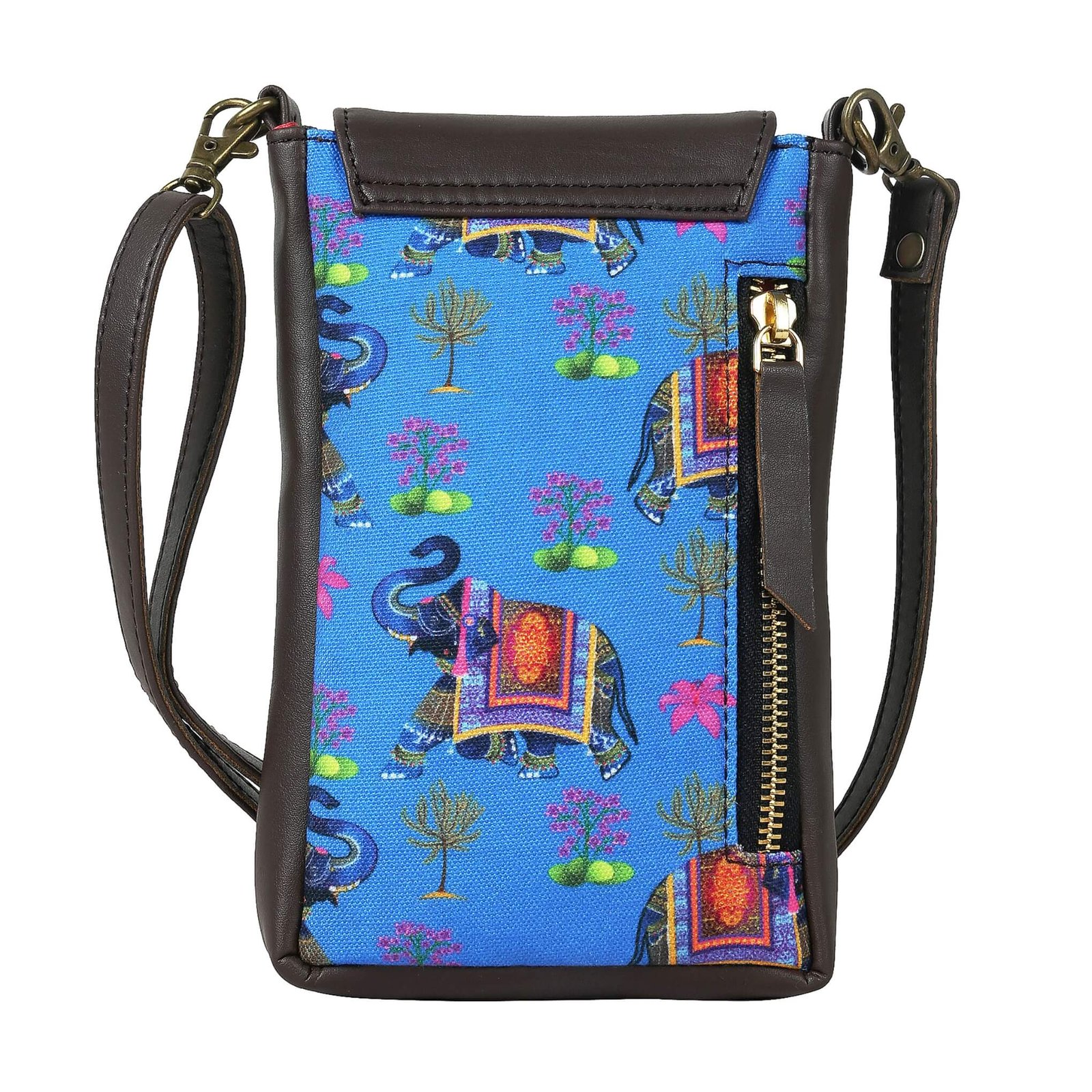 Embrace luxury with our Royal Elephant Women’s Mobile Sling Bag. Featuring an enchanting Elephant Motif, this bag is expertly crafted from durable Poly Canvas and Vegan Leather for a sophisticated look. The Detachable and Adjustable Sling Strap allows for personalized comfort, while the Main Compartment with Flap and Magnetic Closure ensures your essentials are secure. Complete with an External Pocket equipped with a YKK Zipper, this bag exudes elegance and functionality.