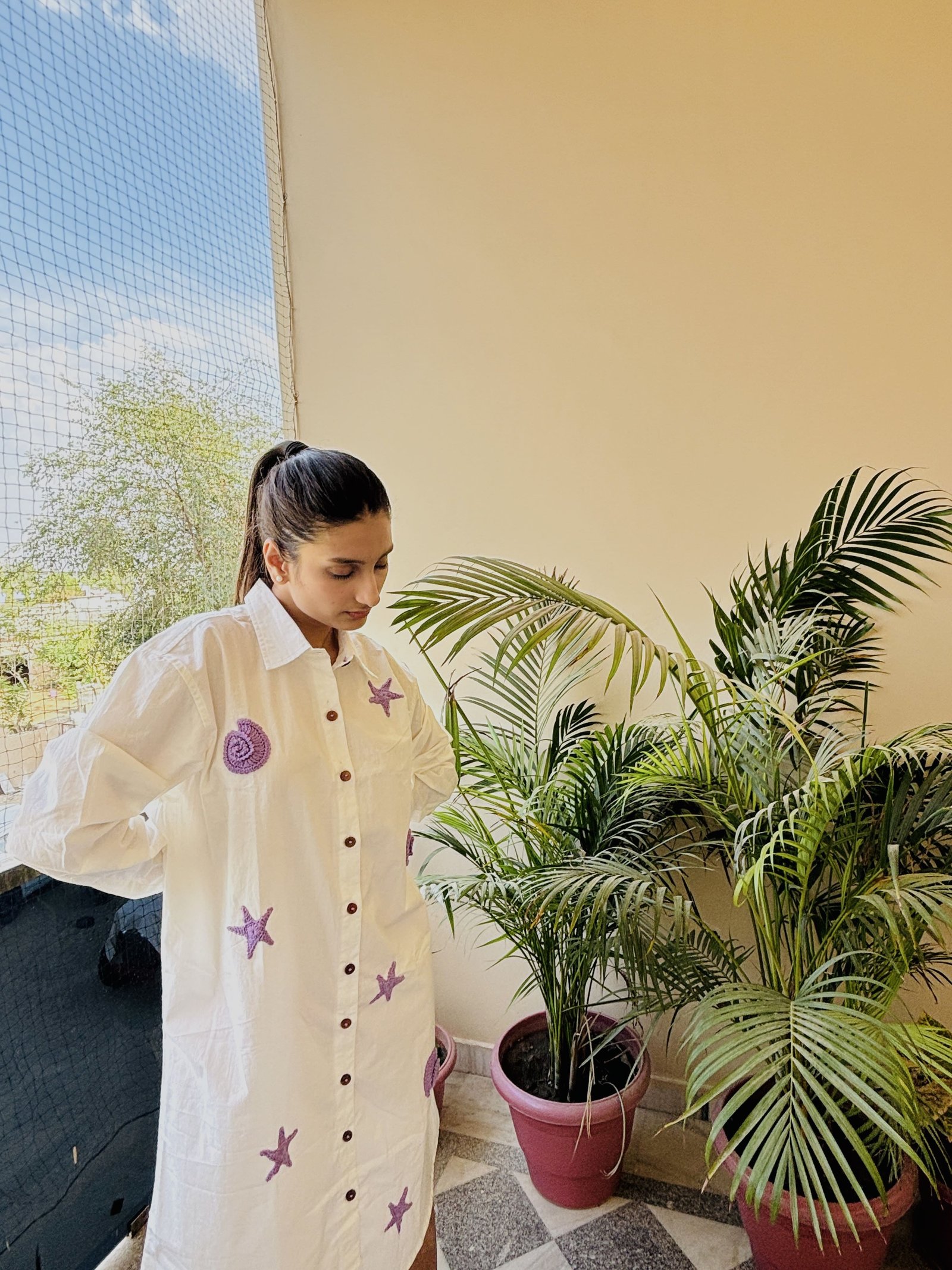 SHELL & STAR DESIGN CORCHET 100% COTTON WHITE DRESS