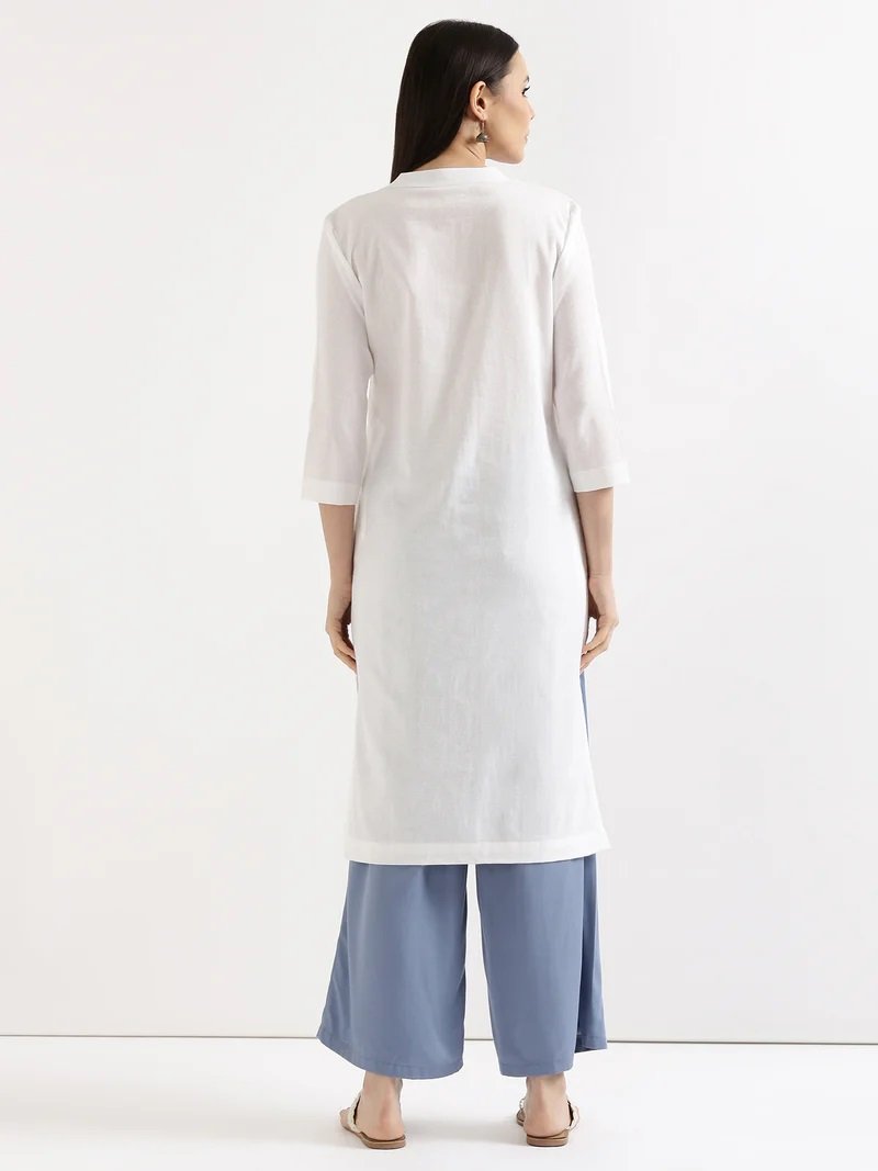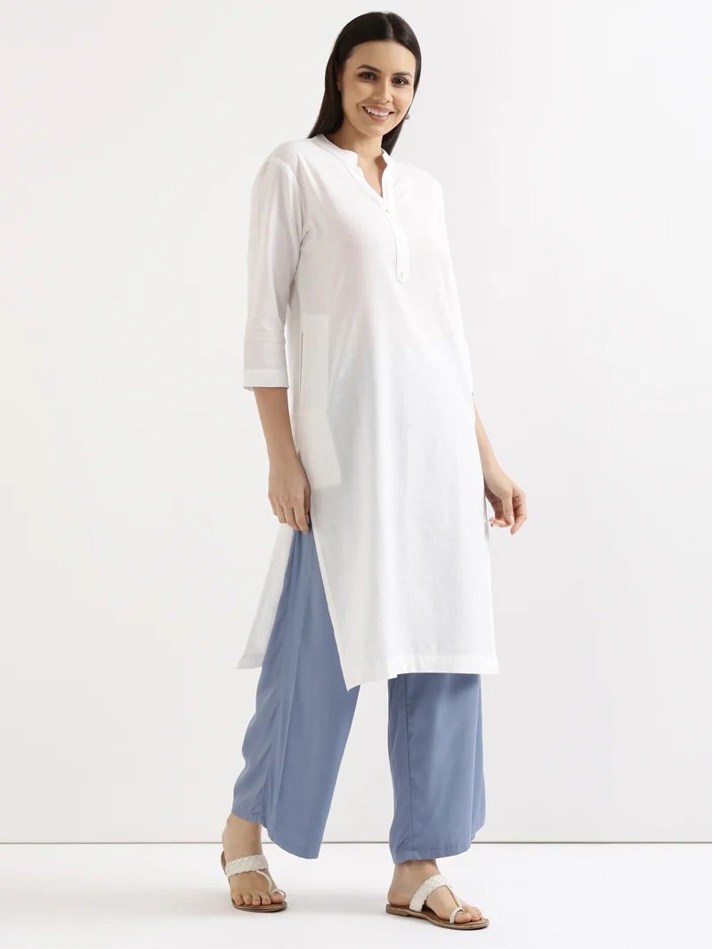 Fabric 80% Cotton 20% Linen Fit Regular Neck line Mandarin collar Sleeves3/4th Occasion Casual, Formal and Ethnic Wash care Machine Wash In Cold Water